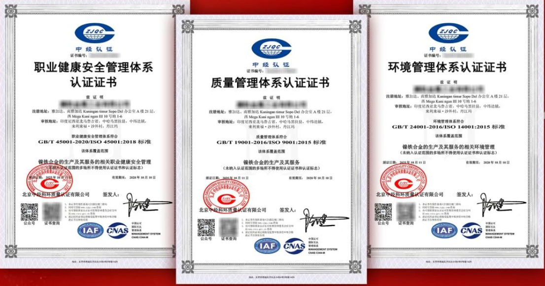 此次緯達貝園區ISO“三體系”認證的順利通過,不僅是對緯達貝園區綜合管理水平的權威認可,更彰顯了園區及入園企業在嚴控品質、踐行環保責任、堅守安全底線等方面的堅定承諾。緯達貝園區將以此次認證為新的起點,進一步總結經驗、推廣典型,形成可**、可推廣的體系建設模式,持續鞏固質量、環境與安全管理成果,為建設國際一流的鎳資源綜合利用綠色產業園區提供堅實支撐。
