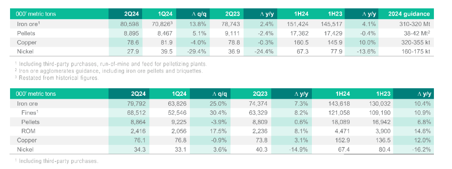 2024年第二季度,鎳產量為2.79萬噸,同比減少24%,主要系鎳加工廠落實計劃內保養維修戰略所致。